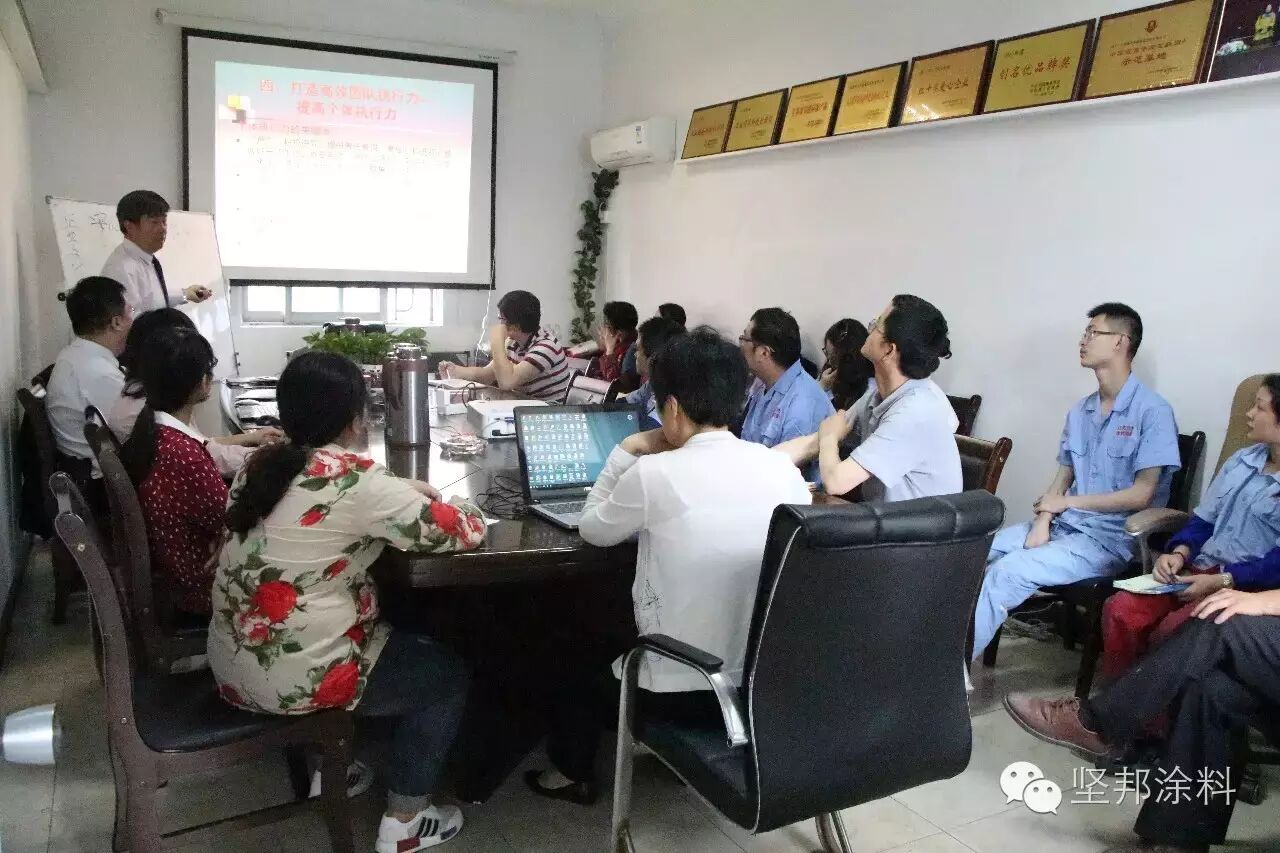 1坚邦涂料《企业管理培训》走到了第三期,通过三期的培训让坚邦团队制度、流程更加完善,各部门间积极配合,从产品生产到质检再到服务都上了一个新的台阶,为坚邦品牌立足国内外市场把好关。